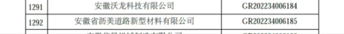 2022年12月26日,安徽省瀝美道路新型材料有限公司通過了由科技廳、財政廳和稅務(wù)機關(guān)組織的高新技術(shù)企業(yè)認定,并榮獲“高新技術(shù)企業(yè)”稱號。