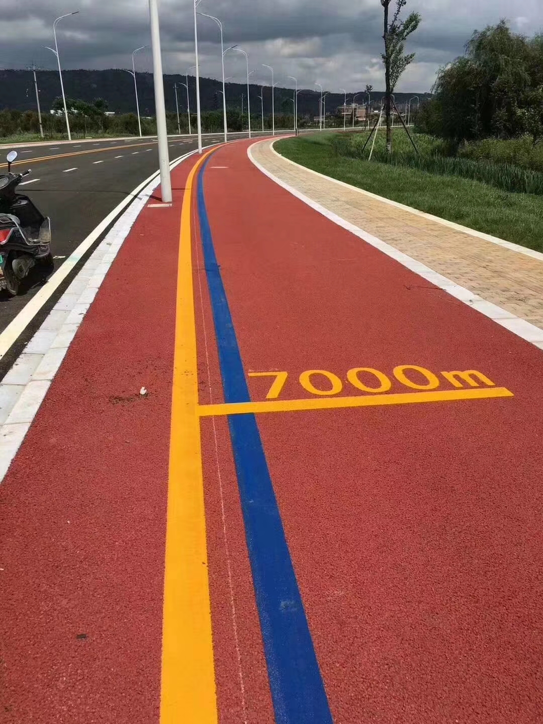 質(zhì)量好的彩色瀝青路面還具有防滑的功能。防滑的路面一般應(yīng)用于類似剎車的減速區(qū)路面和游園小區(qū)等城市觀路面所有需要搞摩擦系數(shù)的各種路面?;镜母拍罹褪窃黾雍捅3诌@些區(qū)域的,安全防滑美觀的性能,達(dá)到這個目的的途徑是通過把高磨光值得骨料用粘合劑固定在路面上形成永久具有彈性的表面。這樣的路面就具有防滑的功能的彩色瀝青路面,彩色瀝青路面的厚度也會根據(jù)路面的情況而進(jìn)行修改。